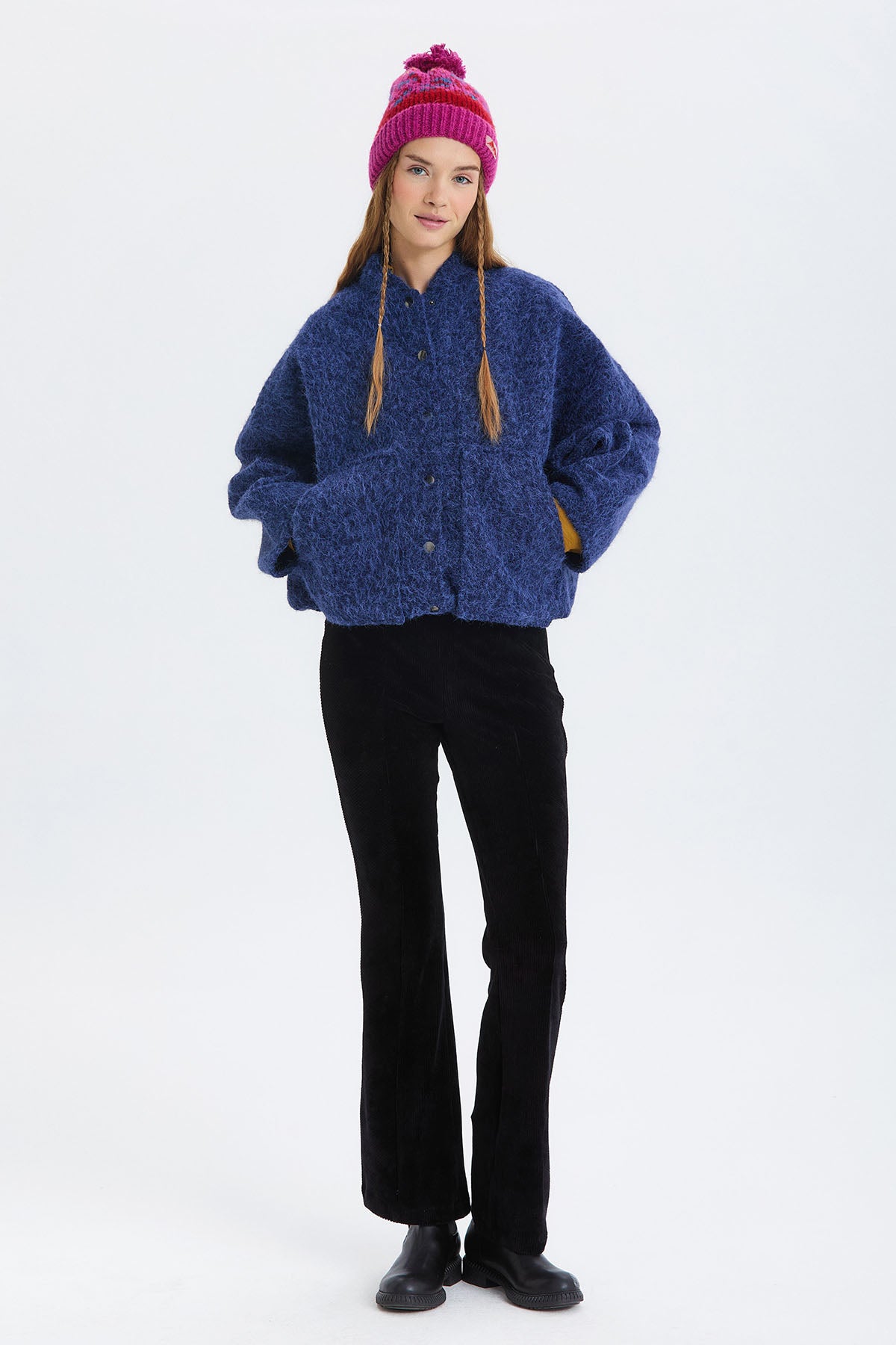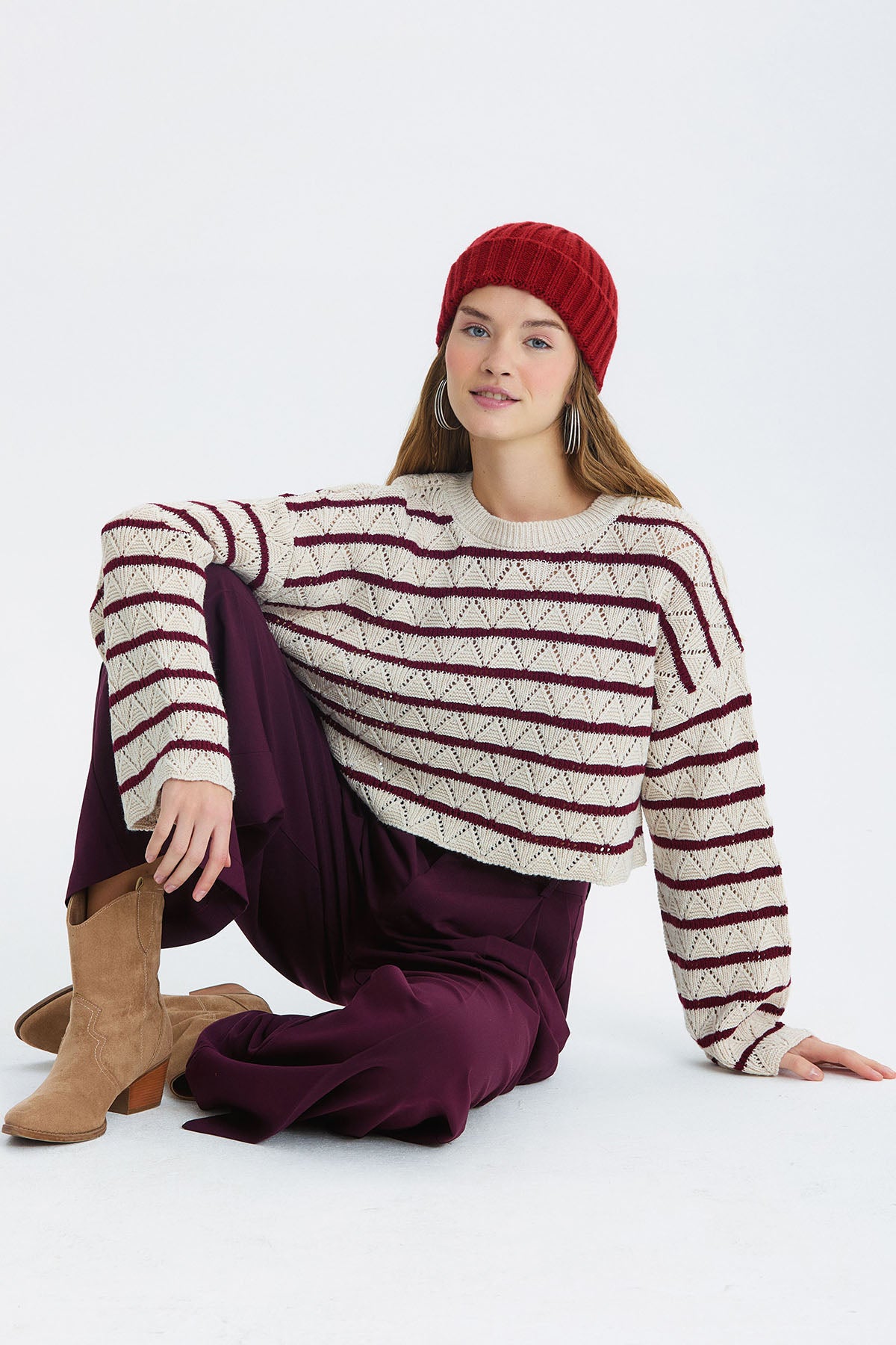 Çizgili El Örgüsü Ponponlu Bere Mix