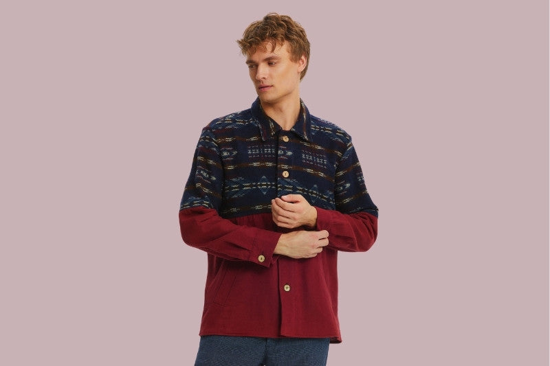 Yuvarlak Yaka Rahat Kesim Erkek Gömlek Bordo