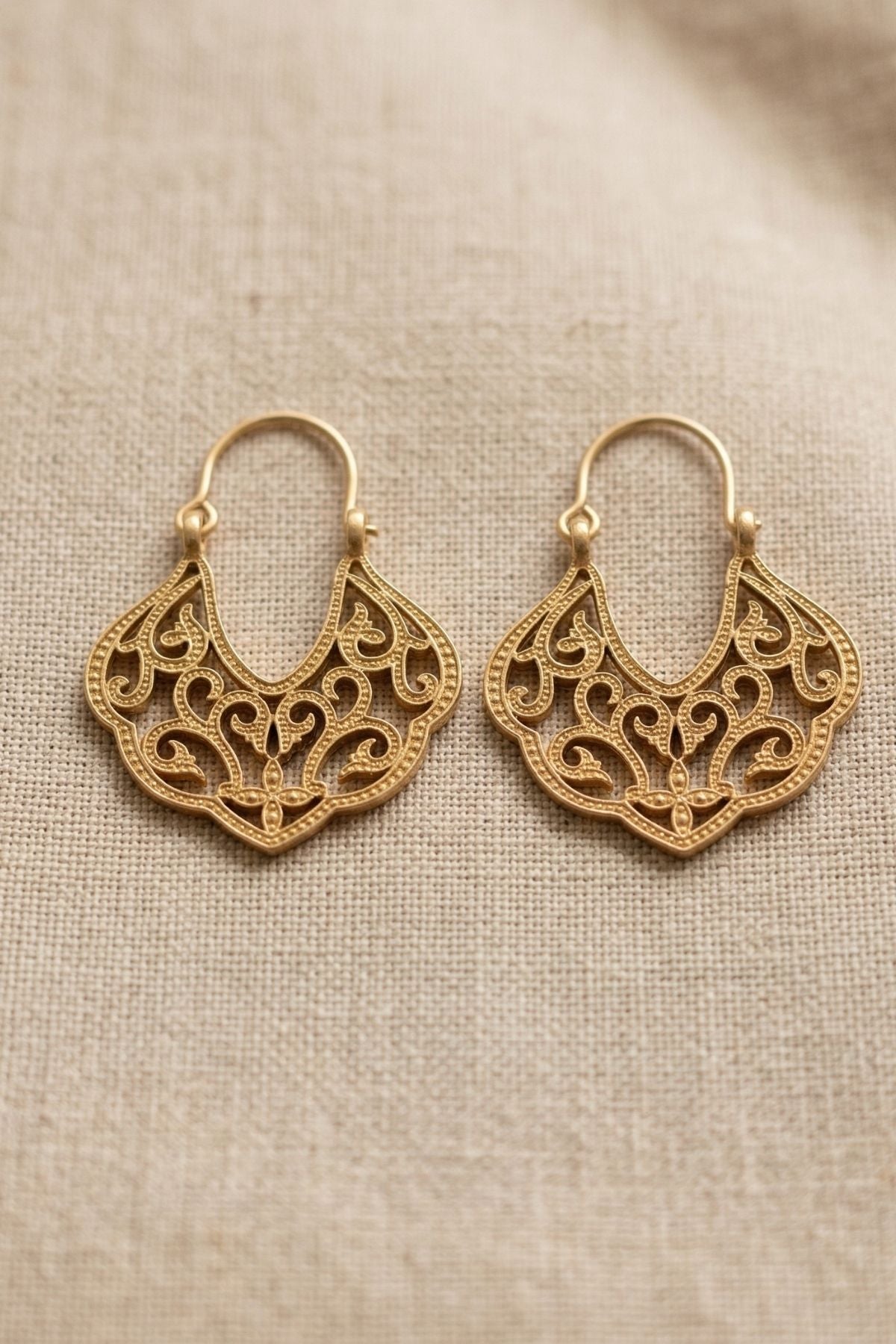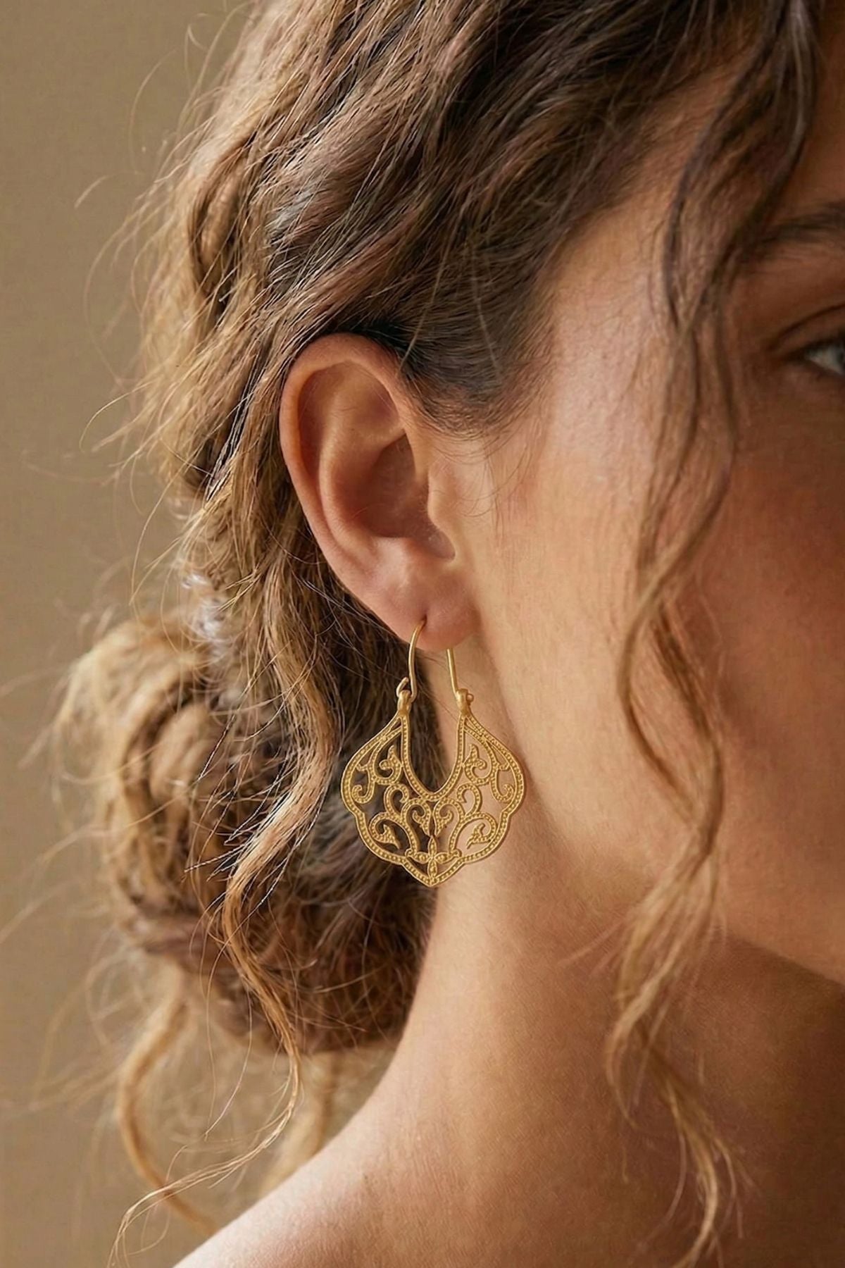 Altın Kaplama, Etnik, Pirinç Küpe No 70