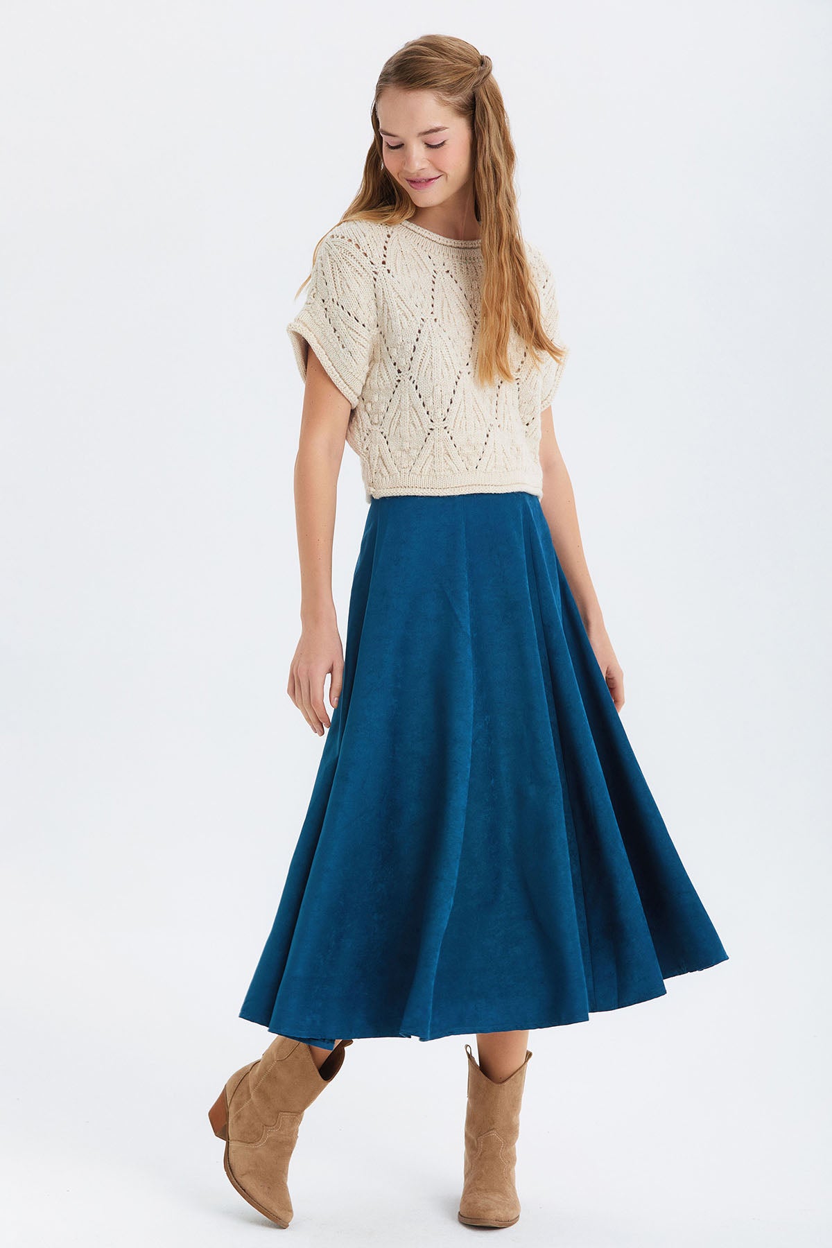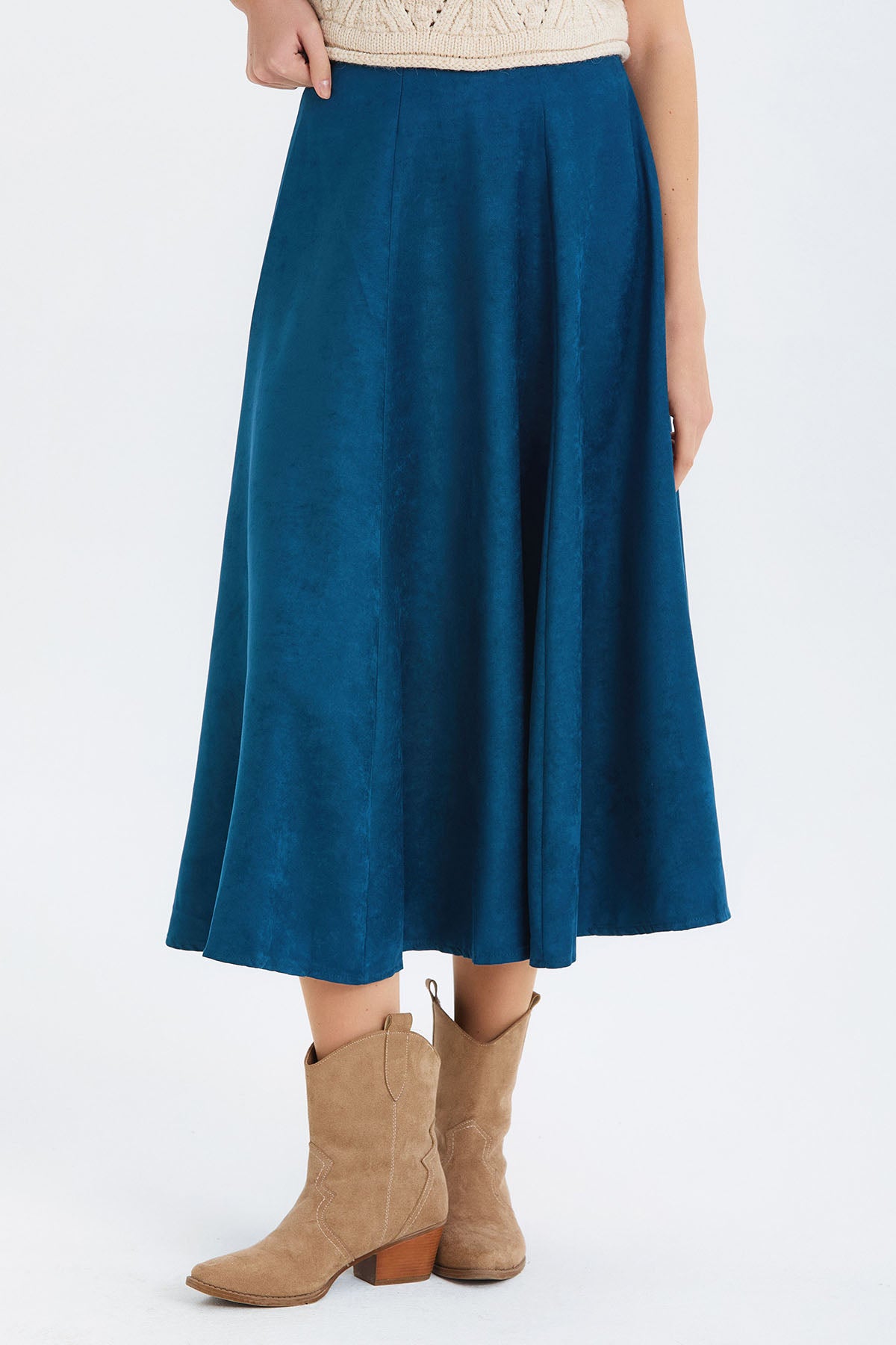 Çizgili Şifon Midi Etek Turuncu - Lacivert
