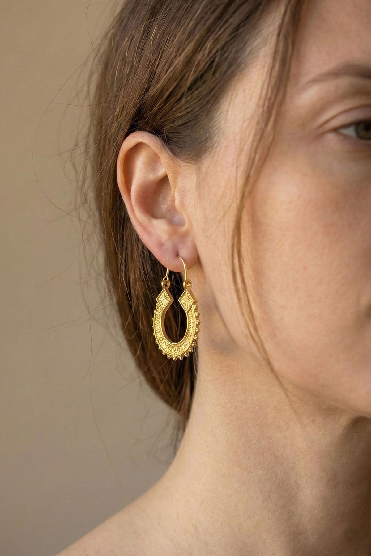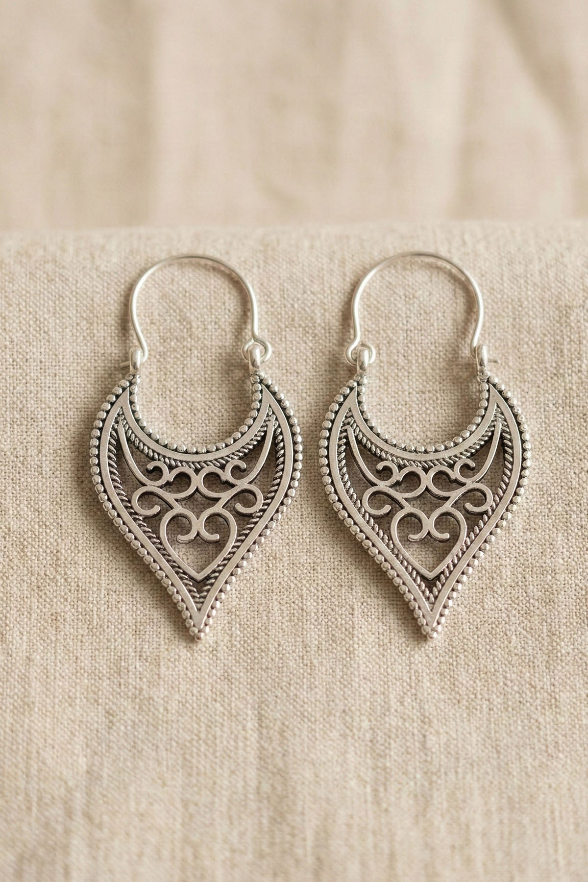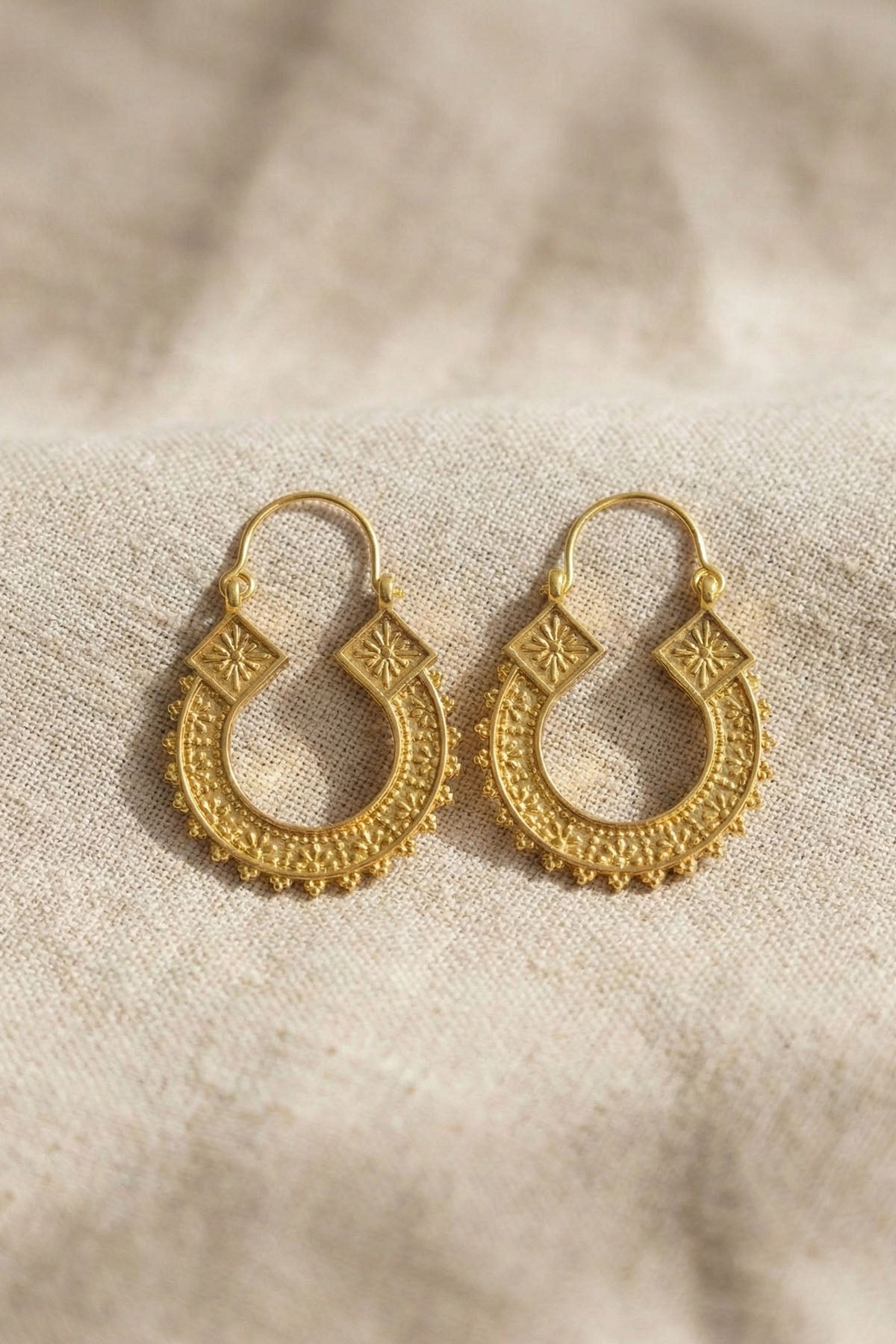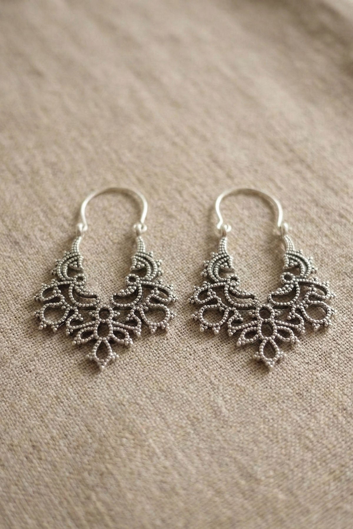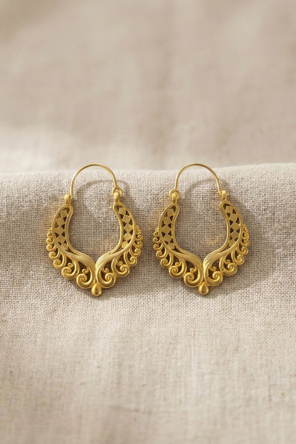 İşlemeli Yüzeyli, Trapez Şekilli, İnce Detaylı, Etnik Motifli, Bohem Tarz Küpe