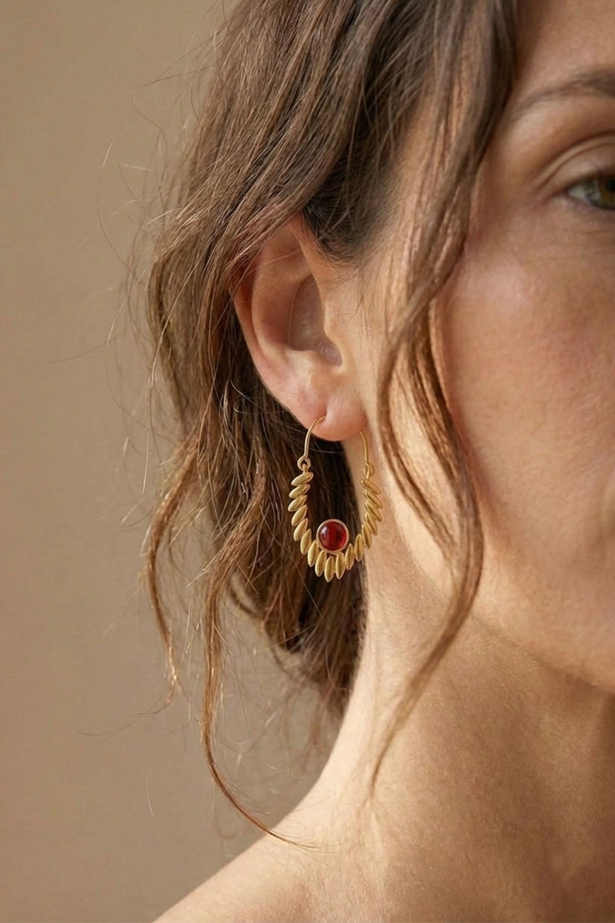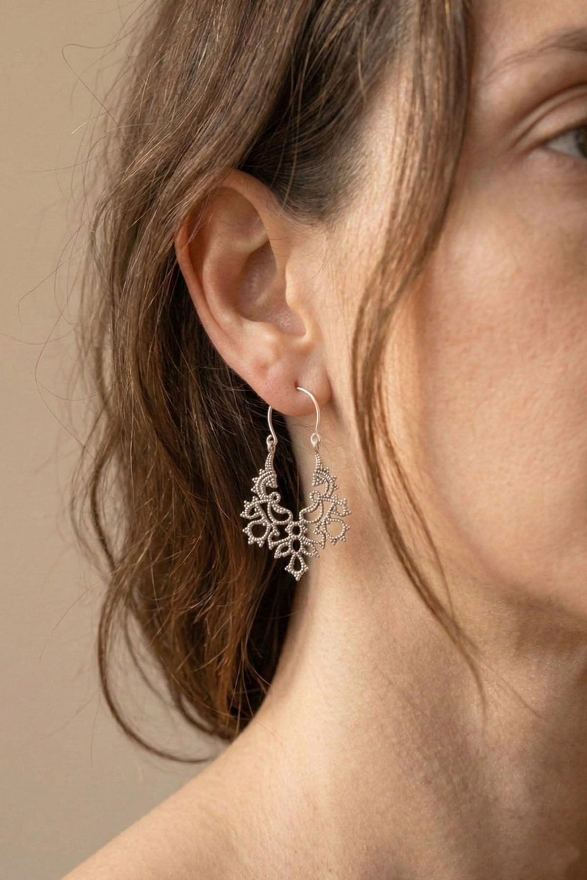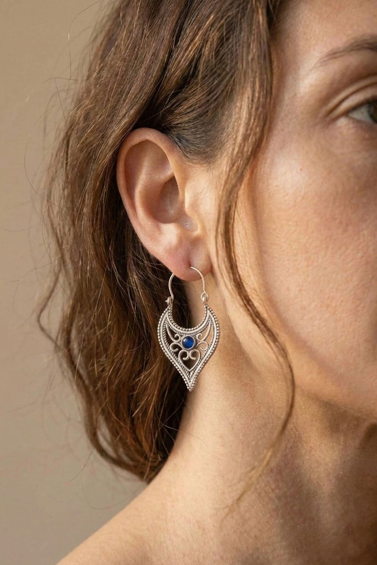 Trapez formdaki bu bohem küpeler, etnik işlemeleriyle dikkat çeker. Hafif yapısı sayesinde gün boyu rahat kullanım sunar ve hem günlük hem de özel kombinlere kolayca uyum sağlar.