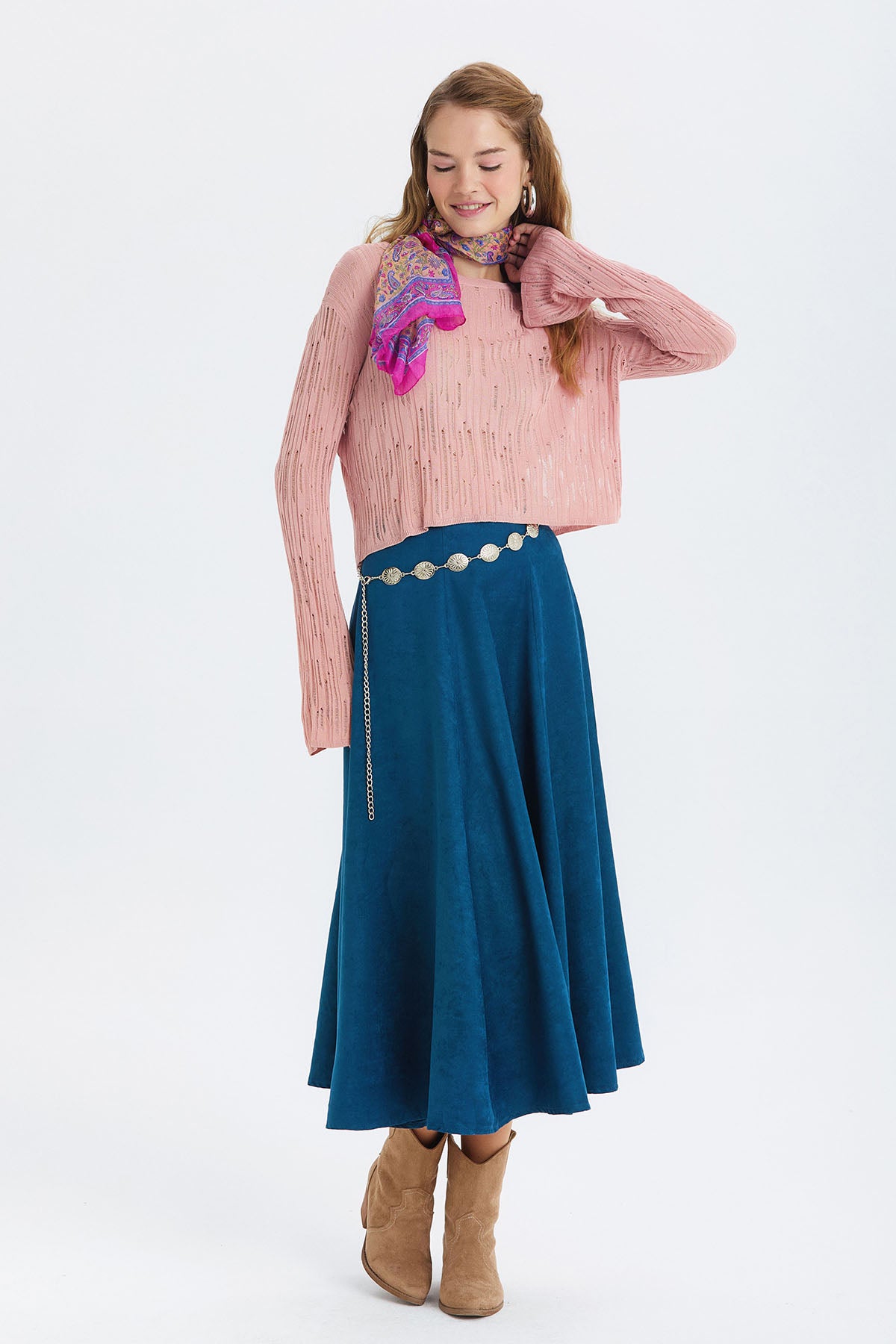 Bel ya da kalça üzerine takılabilen, görünüşe anında şıklık katan zarif bir aksesuar. Elbiselerle romantik, yüksek bel pantolonlarla modern ve bohem eteklerle tamamlayıcı bir hava yaratır. Hafif yapısıyla gün boyu rahat kullanılır ve kombine ince ama güçlü bir vurgu katar.