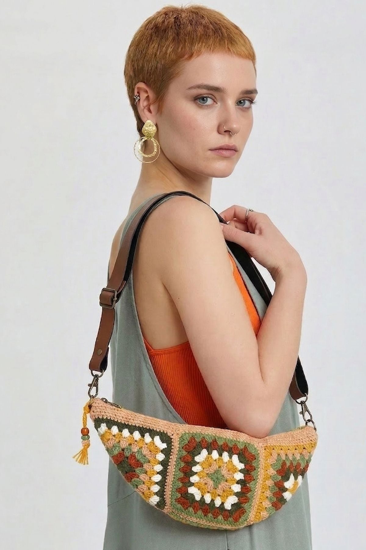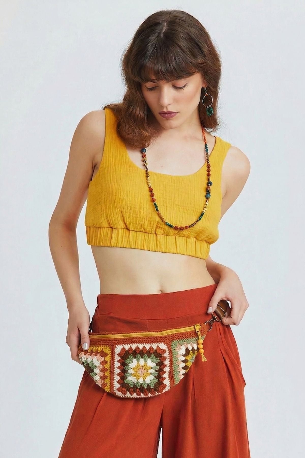 Bu göz alıcı bohem makyaj çantası, canlı renkli motiflerle ve şık mavi çizgilerle süslenmiş olup, her detayı elde örülmüştür. Keten iç astarı sayesinde çanta içindeki ürünlerini nazikçe korurken, fermuarlı kapatma sistemi ile eşyalarını güvenle saklar. Kompakt boyutu ve çarpıcı tasarımı ile bu makyaj çantası, günlük kullanımın için idealdir ve seyahatlerinde de mükemmel bir yol arkadaşı olacaktır. Stilini yansıtan bu çanta, fonksiyonellik ve moda arasında mükemmel bir denge sunar.