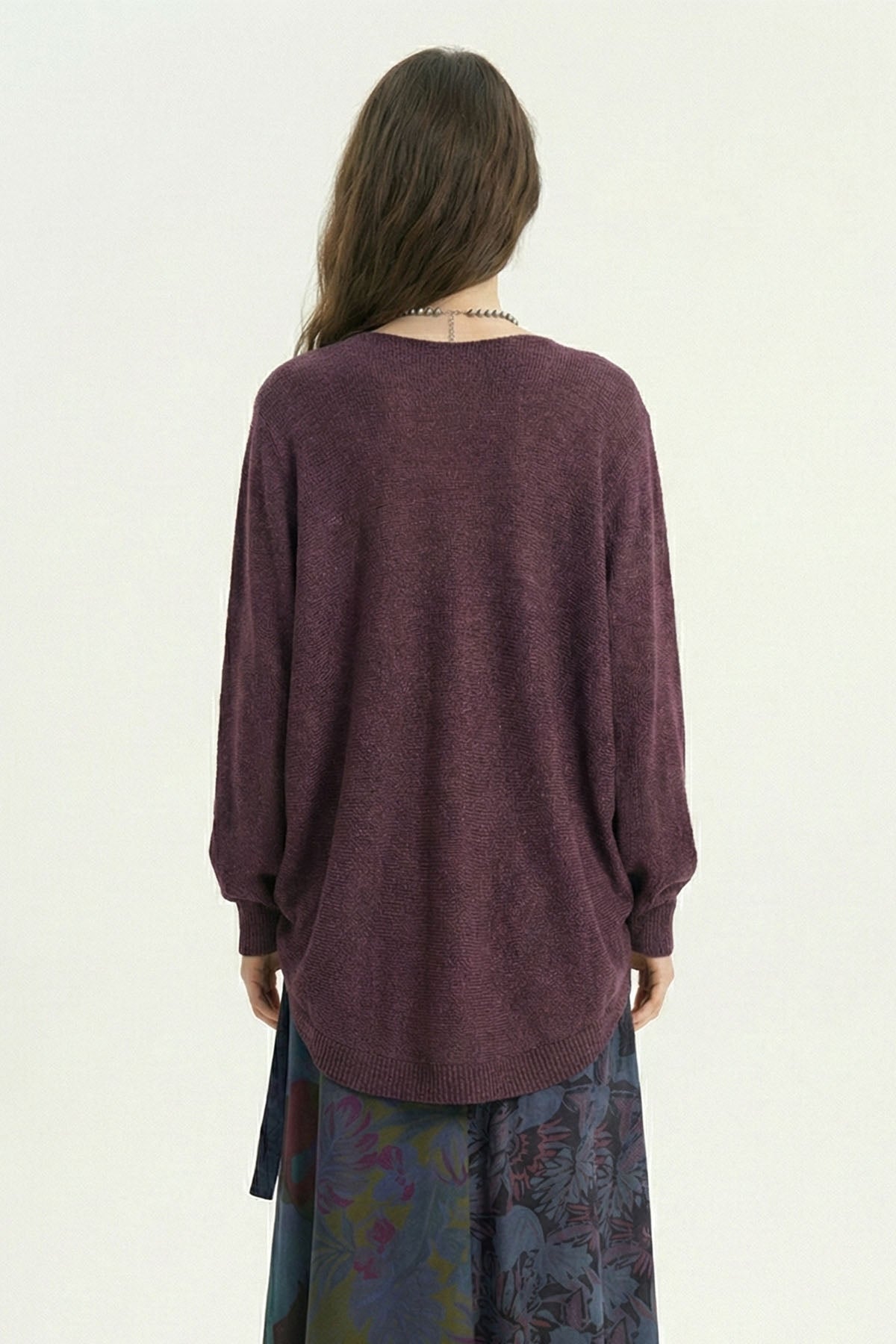 Salaş Asimetrik Uzun Bohem Tarz Triko Bluz Taba